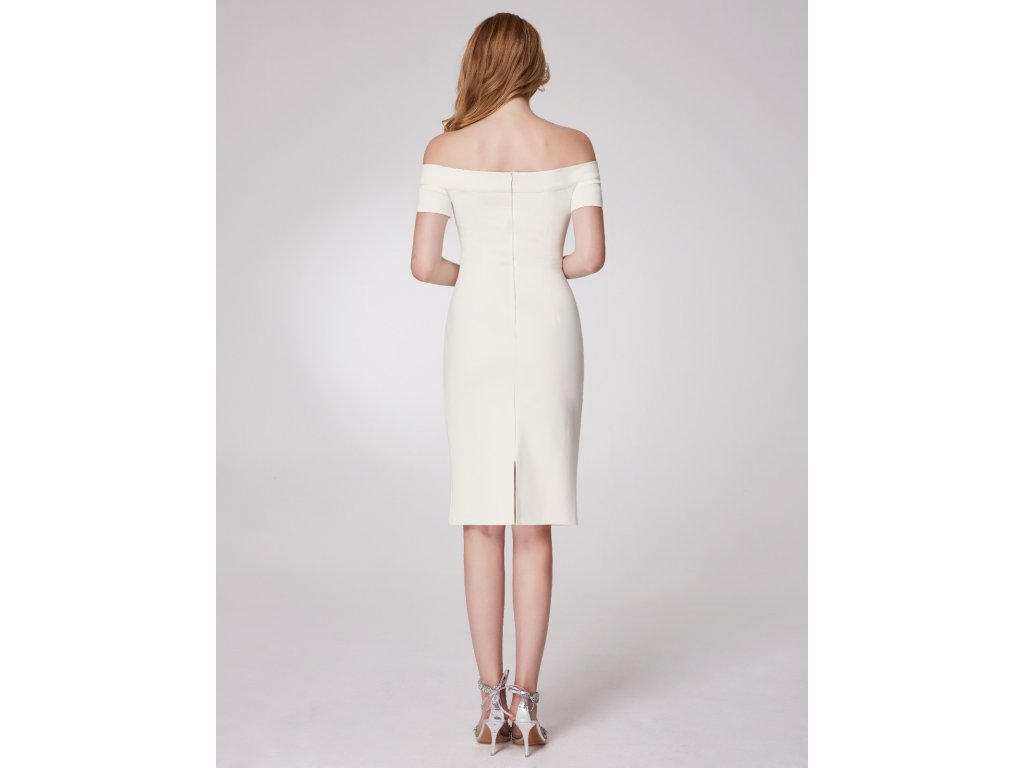 Bílé koktejlky se spadlými ramínky, délka sukně pod kolena. Jsou z pružné látky, která se přizpůsobí Vaší postavě. Šaty jsou velmi elegantní, doporučujeme je k běžnému nošení např. do kanceláře nebo jako tzv. "popůlnočky" pro nevěsty.