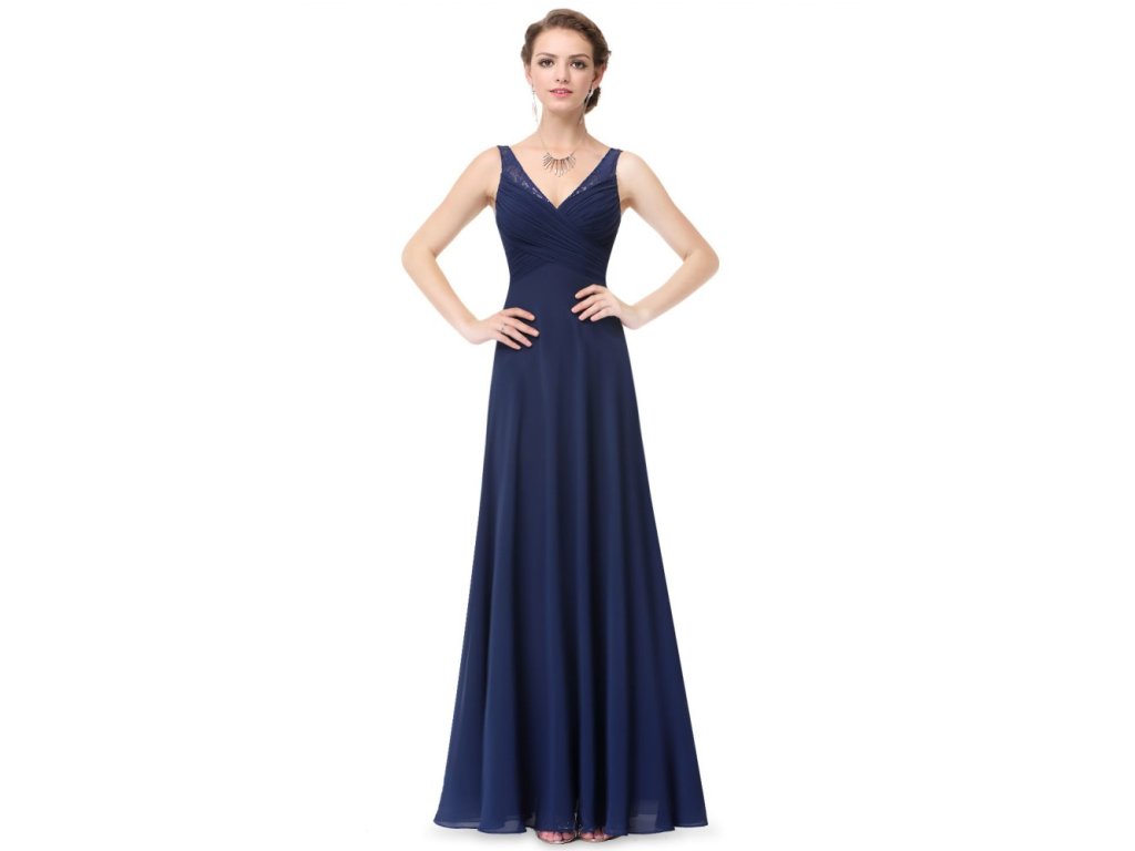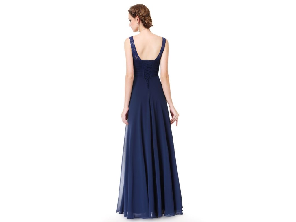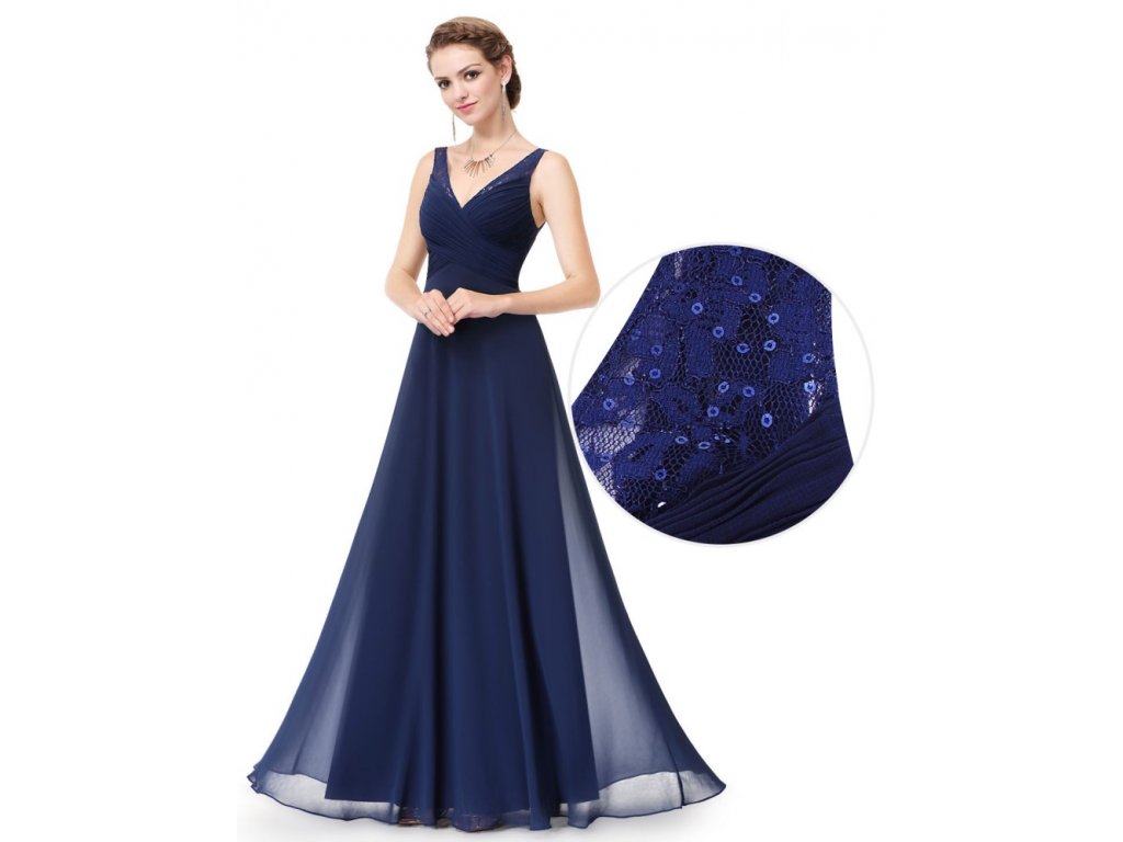Námořnicky modré večerní šaty na šněrování zdobené pajetkami