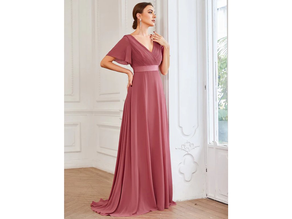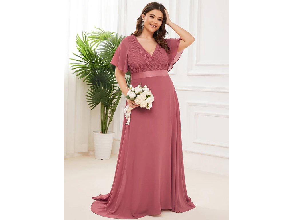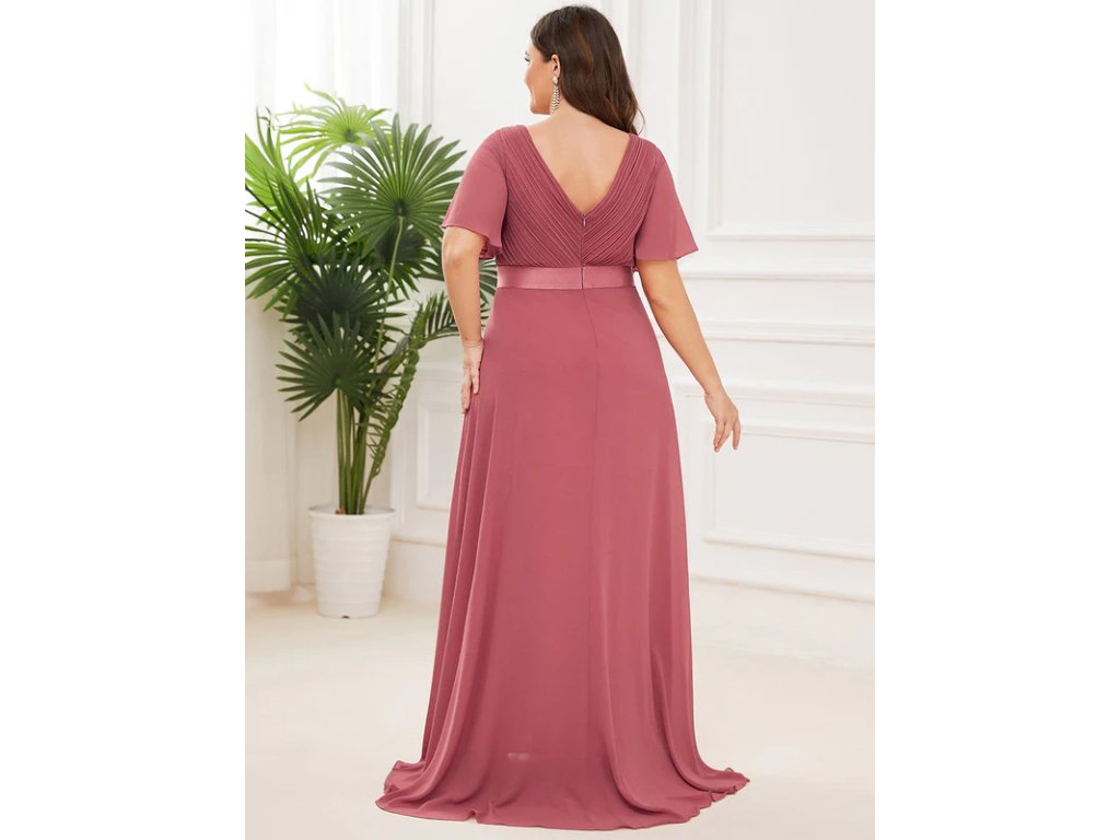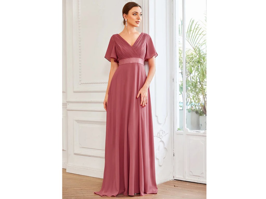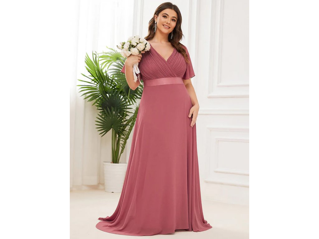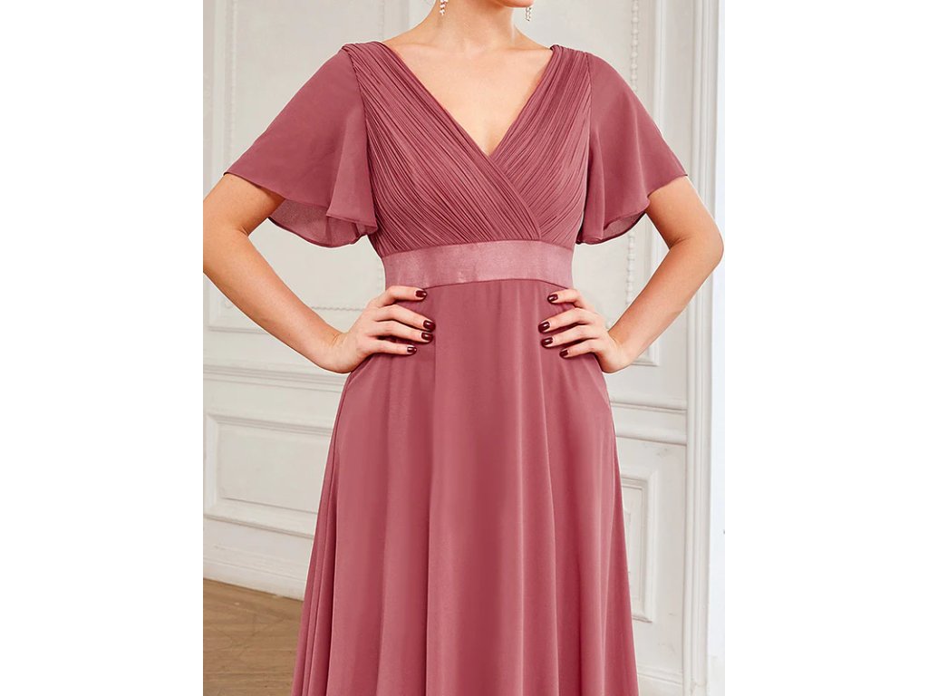 Okouzlující kamejově hnědé šaty s dvojitým výstřihem do V