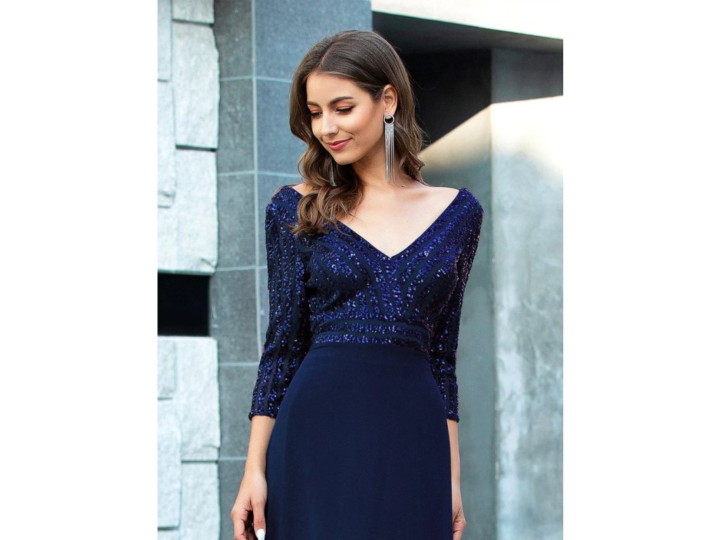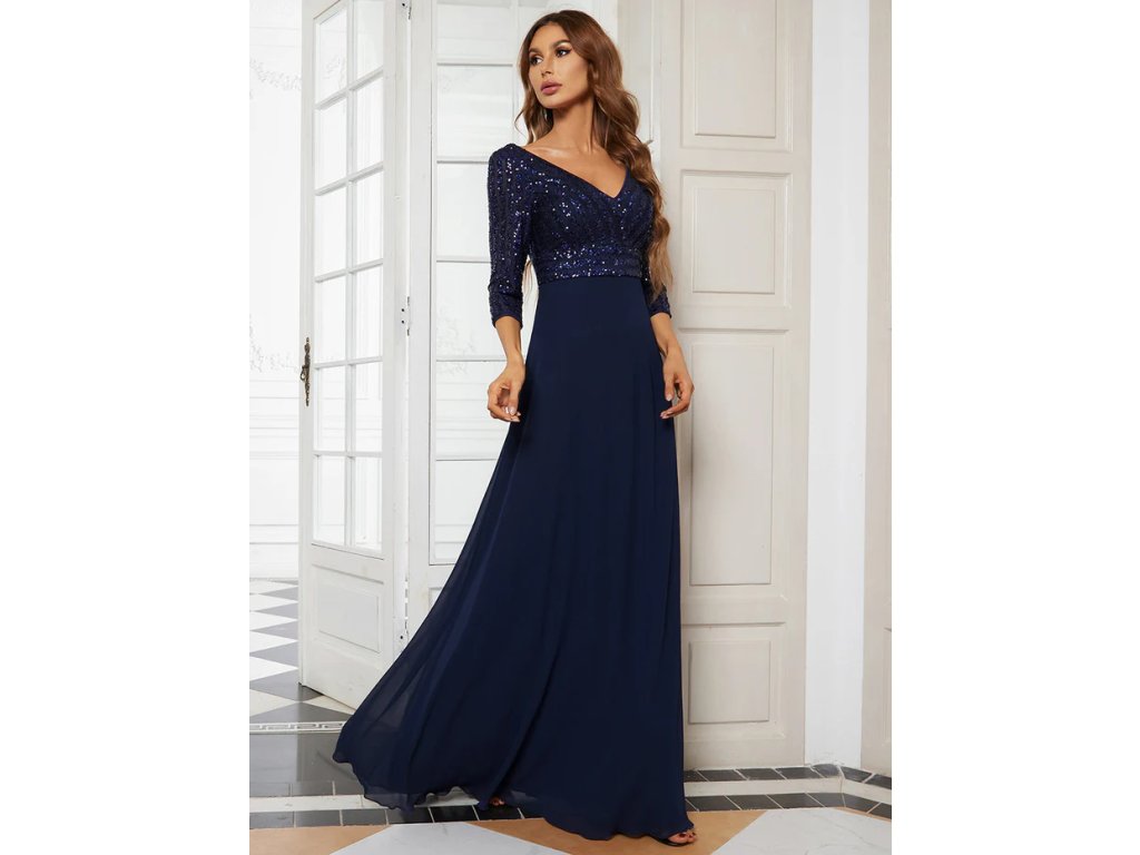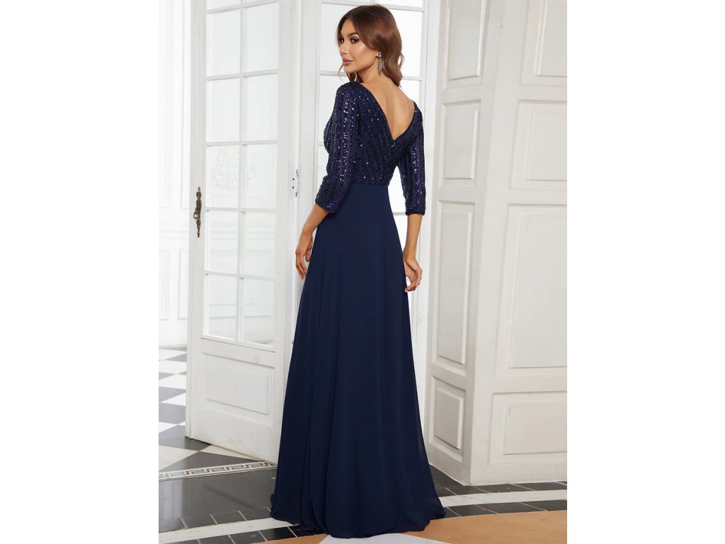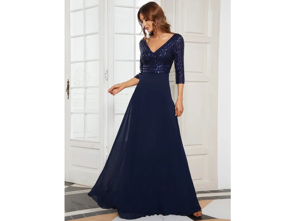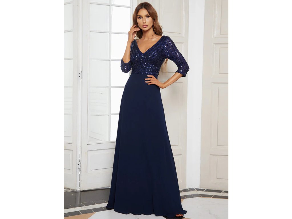Sexy V Neck A-Line Sequin Wholesale Evening Dresses With 3/4 Sleeve
